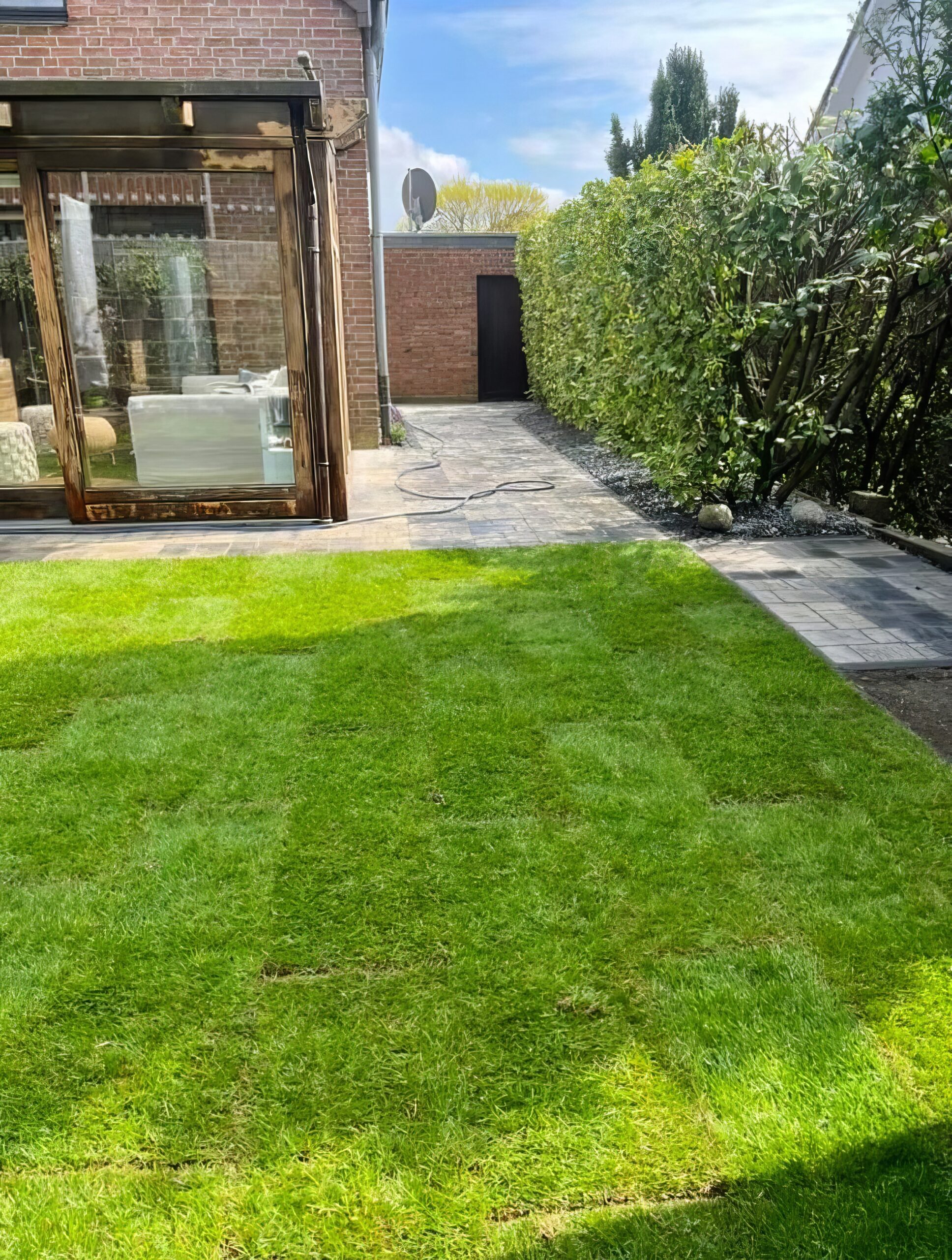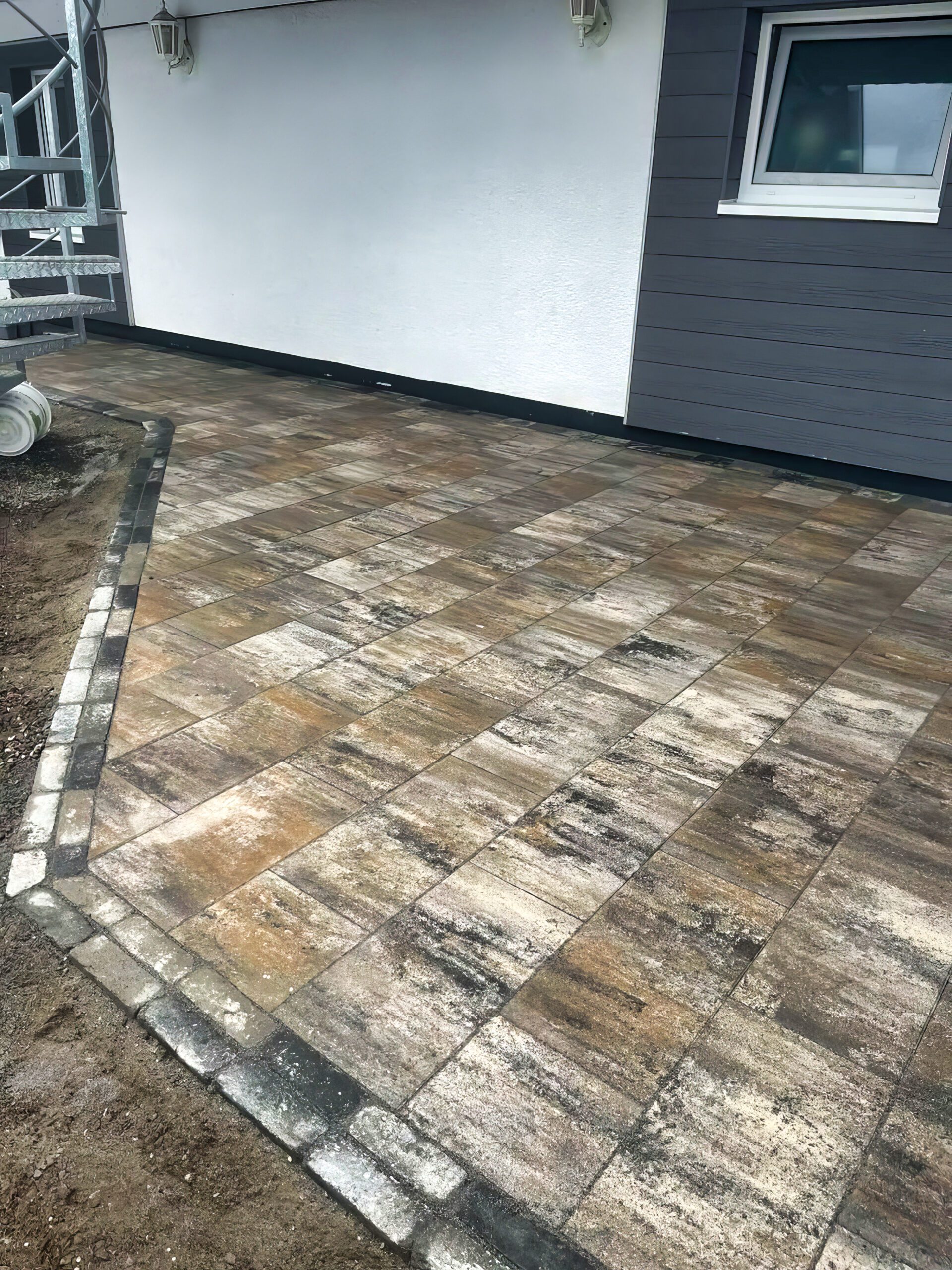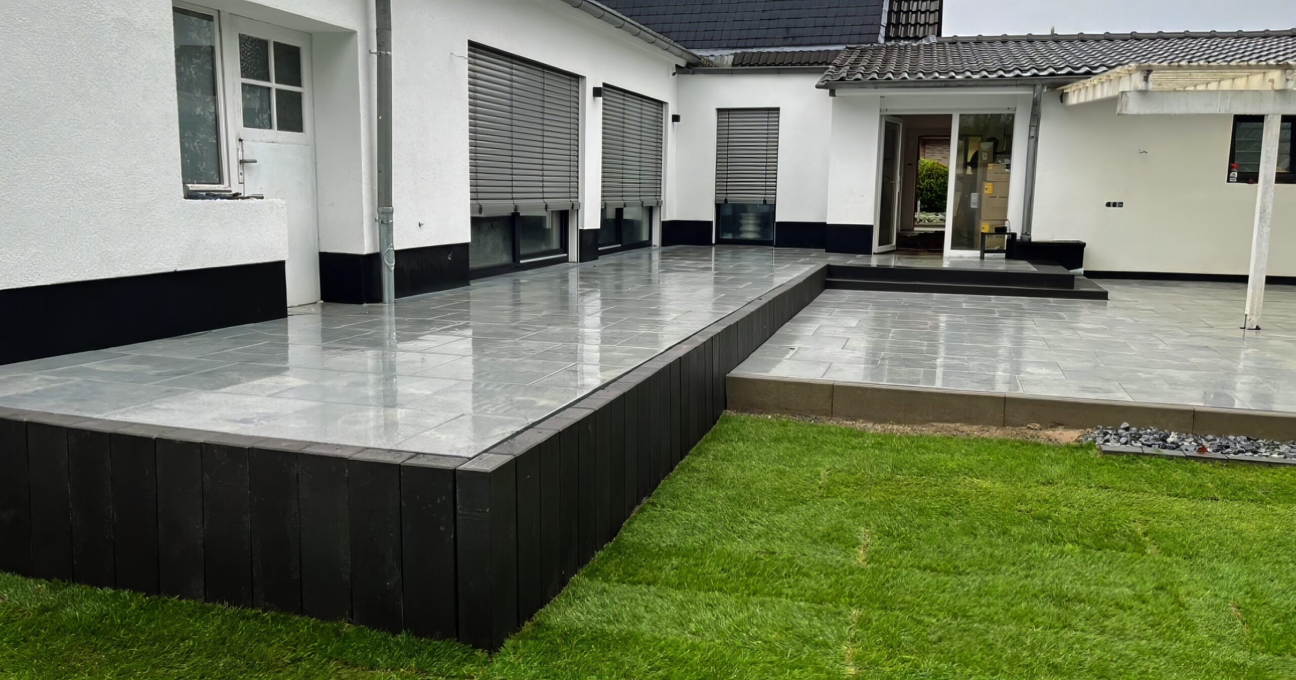 - Installation der Materialien: Die für die Terrasse ausgewählten Materialien, wie behandeltes Holz, Betonplatten oder Natursteine, werden gemäß dem genehmigten Design verlegt. Jedes Material wird sorgfältig installiert, um eine schöne Optik und hohe Haltbarkeit zu gewährleisten.