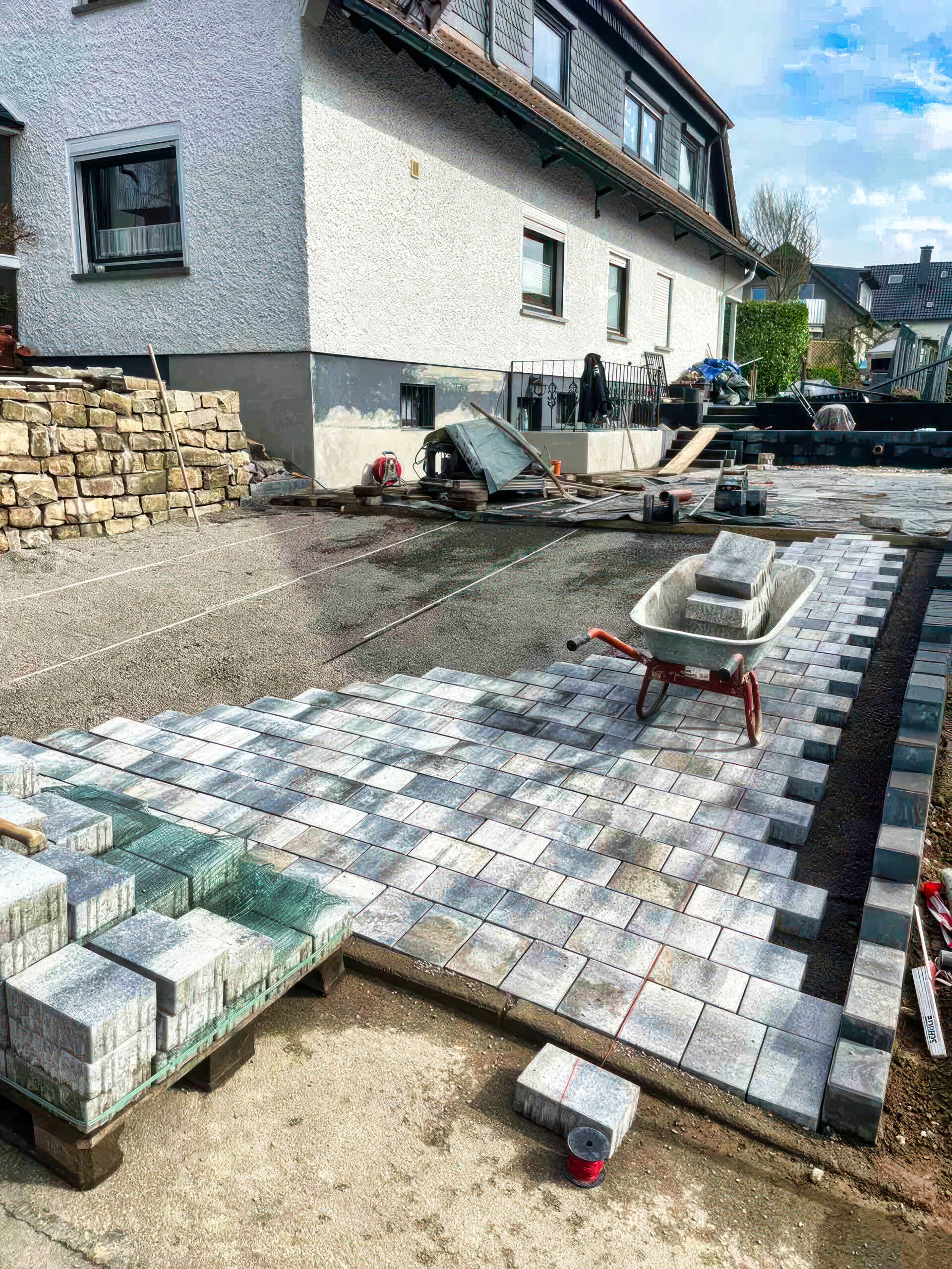 - Installation der Basis: Eine stabile Basis, in der Regel aus verdichtetem Kies, wird verlegt, um die Stabilität und Langlebigkeit der Terrasse zu gewährleisten.